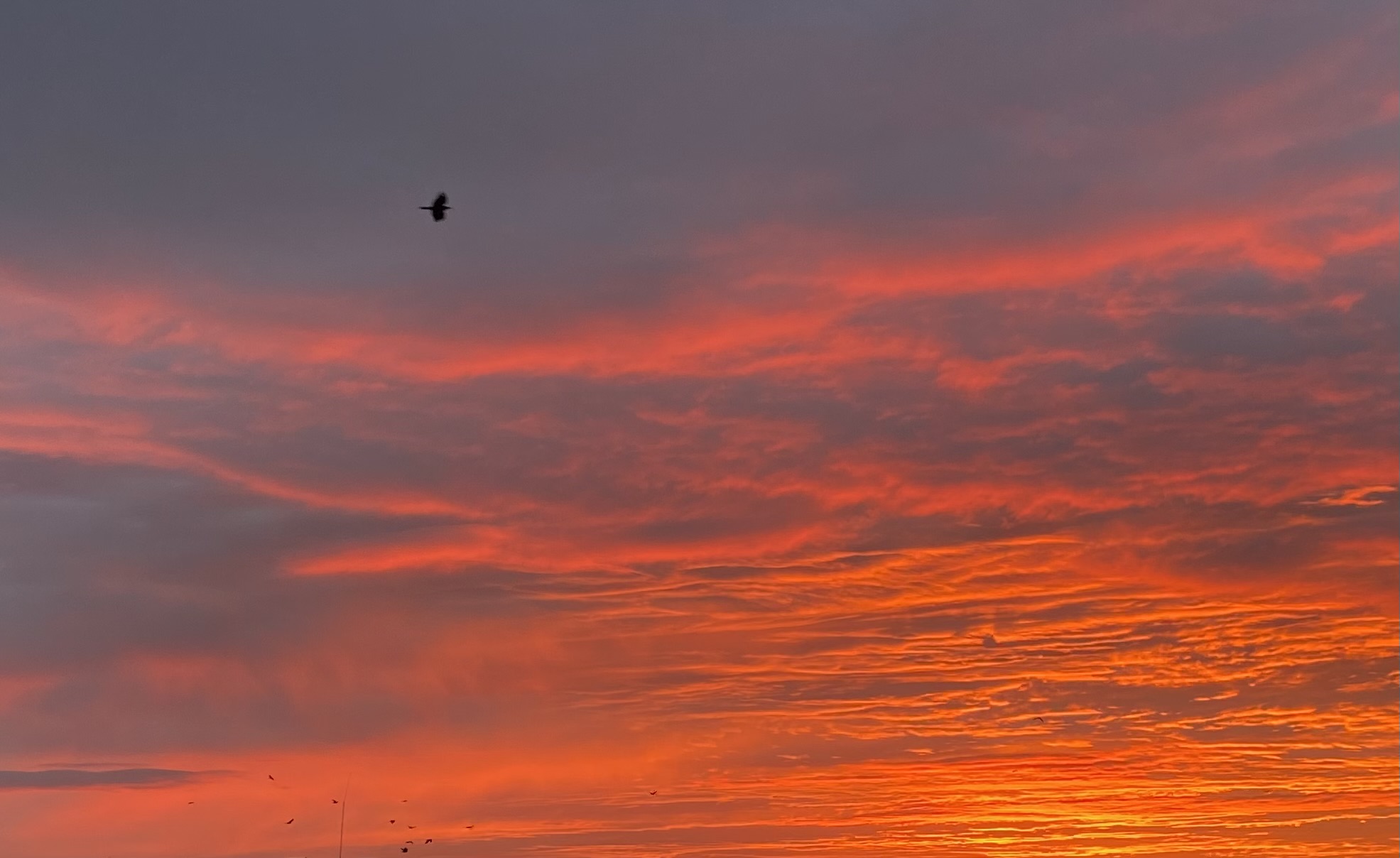 Cold morning, still dark. He rises, spreading light in the black sky, full of clouds. A void of light flickering between the clouds. He shines. He falls. Sliding down the radius. Her eyes indulge, regarding his tragic destiny. He's dead.